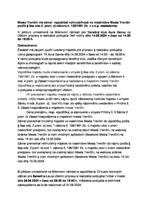 Hlavná stránka > Samospráva > Transparentný Trenčín > Predaj a prenájom majetku > Zámer vypožičať hnuteľný majetok