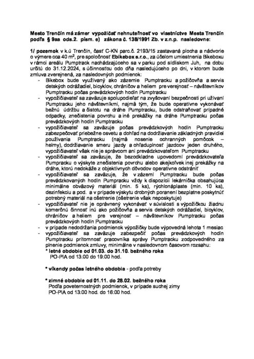 Hlavná stránka > Samospráva > Transparentný Trenčín > Predaj a prenájom majetku > Zámer vypožičať nehnuteľný majetok
