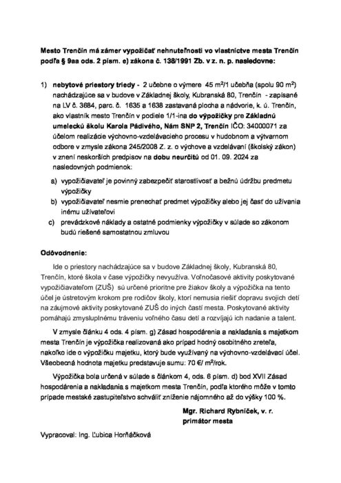 Hlavná stránka > Samospráva > Transparentný Trenčín > Predaj a prenájom majetku > Zámer vypožičať priestory-základná škola