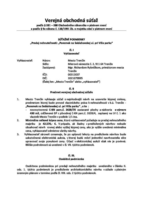Pozemok na Soblahovskej ulici pri Villa parku – Súťažné podmienky