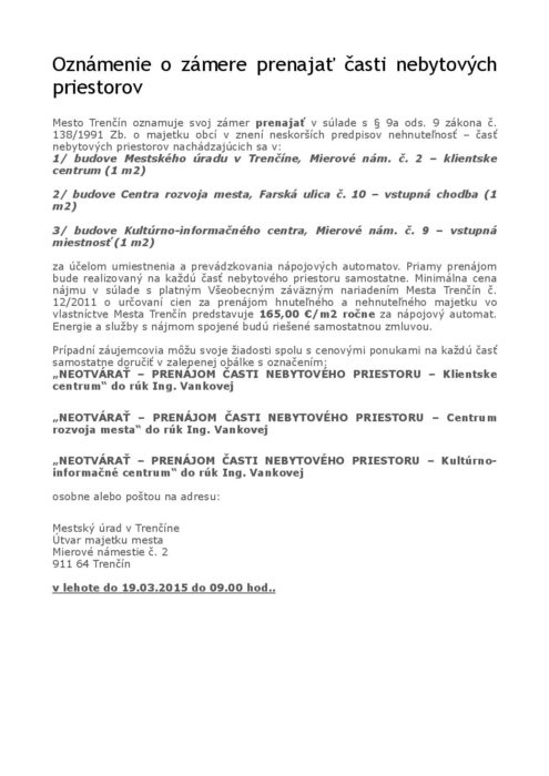 Prenájom – nápojové automaty