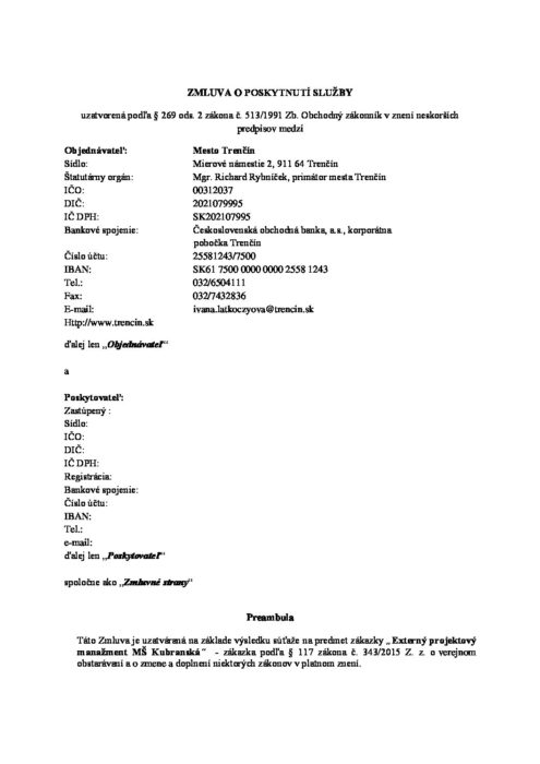 Príloha č. 2 – Zmluva o poskytnutí služby_Externý projektový manažment_MŠ Kubranská