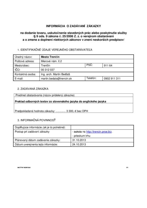 preklad odborných textov zo slovenského jazyka do anglického jazyka