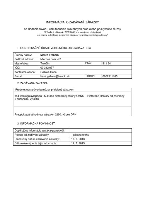 tlač katalógu sympózia kultúrno historickej prílohy OKNO Historické kláštory od záchrany k dnešnému využitiu