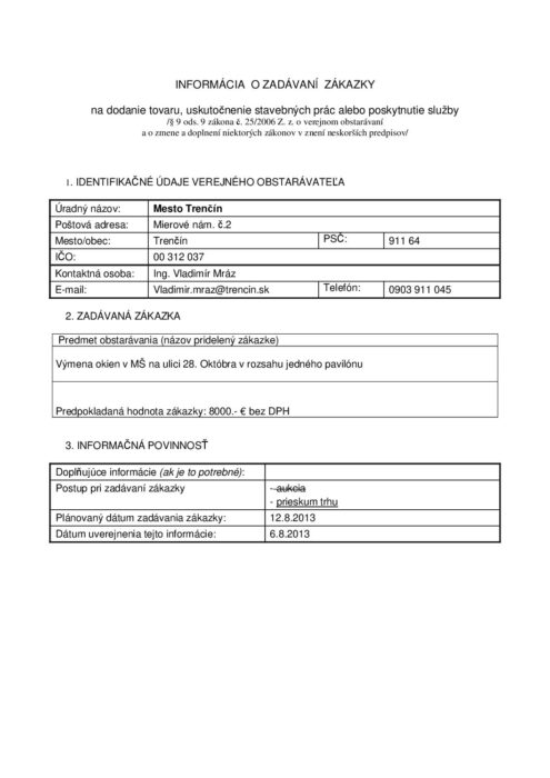 výmena okien MŠ na Ul. 28.októbra