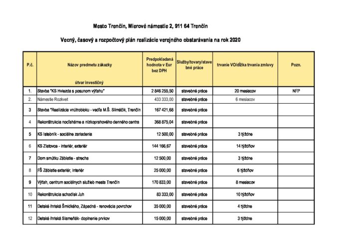 Plán verejného obstarávania 2020