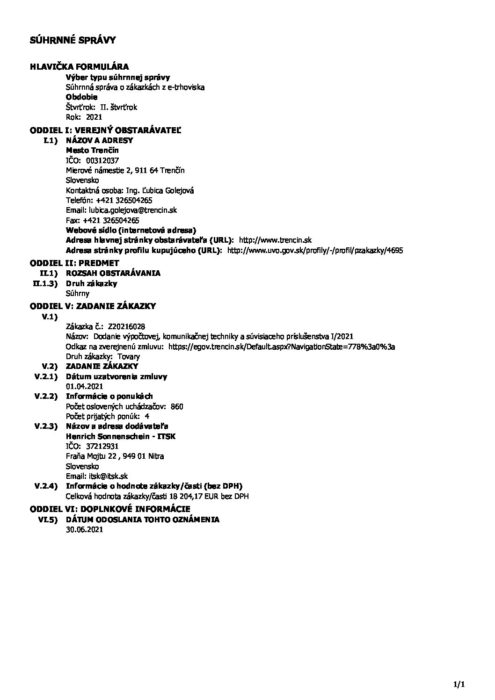 Súhrnná správa o zákazkách za II.štvrťrok 2021