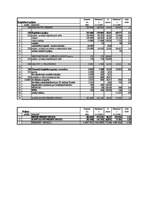 Hlavná stránka > Samospráva > Transparentný Trenčín > Rozpočet mesta > Rozpočet mesta – rok 2005 > Kapitálové príjmy