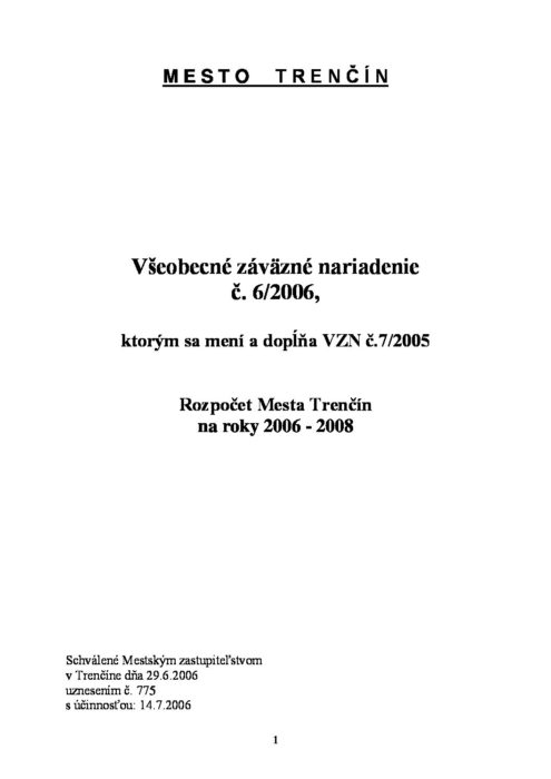 Hlavná stránka > Samospráva > Transparentný Trenčín > Rozpočet mesta > Rozpočet mesta – rok 2006 > Zmena rozpočtu 2006 č.1 29.6.2006