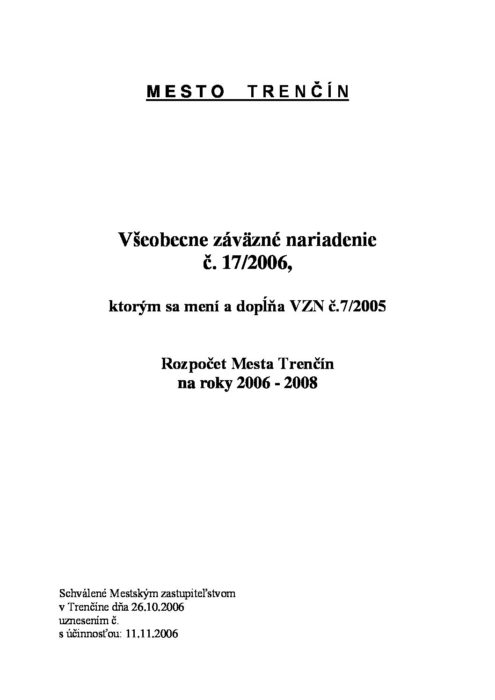 Hlavná stránka > Samospráva > Transparentný Trenčín > Rozpočet mesta > Rozpočet mesta – rok 2006 > Zmena rozpočtu 2006 č.2 26.10.2006
