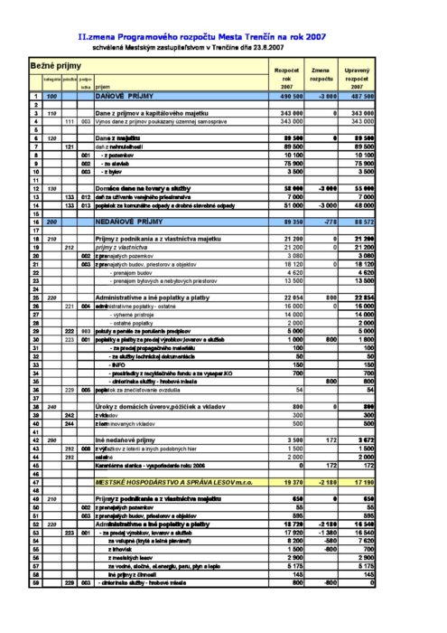 Hlavná stránka > Samospráva > Transparentný Trenčín > Rozpočet mesta > Rozpočet mesta – rok 2007 > Bežné príjmy