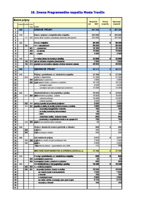 Hlavná stránka > Samospráva > Transparentný Trenčín > Rozpočet mesta > Rozpočet mesta – rok 2007 > Bežné príjmy