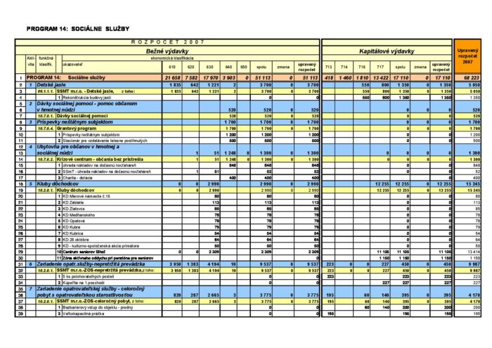 Hlavná stránka > Samospráva > Transparentný Trenčín > Rozpočet mesta > Rozpočet mesta – rok 2007 > Program 14