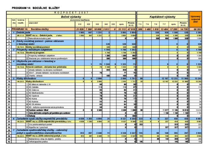 Hlavná stránka > Samospráva > Transparentný Trenčín > Rozpočet mesta > Rozpočet mesta – rok 2007 > Program 14
