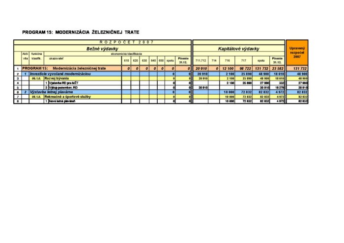 Hlavná stránka > Samospráva > Transparentný Trenčín > Rozpočet mesta > Rozpočet mesta – rok 2007 > Program 15