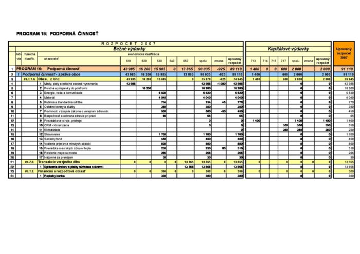 Hlavná stránka > Samospráva > Transparentný Trenčín > Rozpočet mesta > Rozpočet mesta – rok 2007 > Program 16