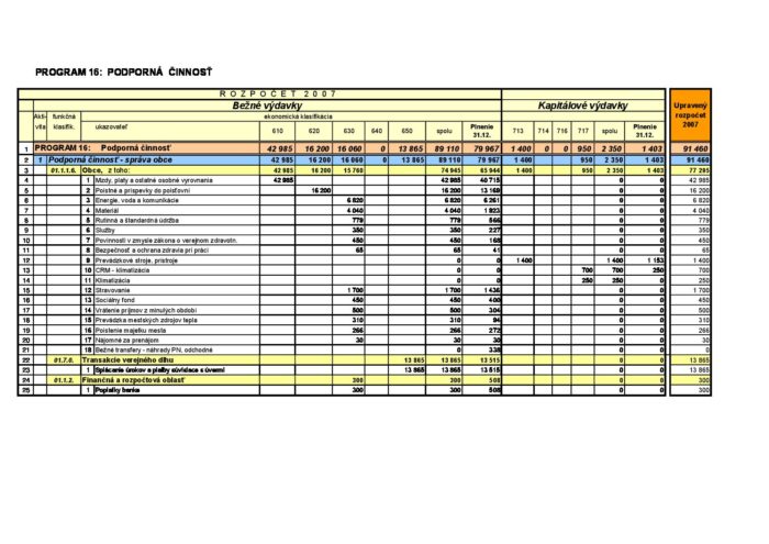 Hlavná stránka > Samospráva > Transparentný Trenčín > Rozpočet mesta > Rozpočet mesta – rok 2007 > Program 16