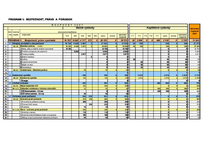 Hlavná stránka > Samospráva > Transparentný Trenčín > Rozpočet mesta > Rozpočet mesta – rok 2007 > Program 5