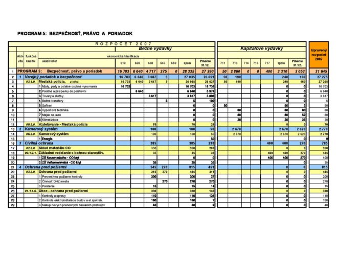 Hlavná stránka > Samospráva > Transparentný Trenčín > Rozpočet mesta > Rozpočet mesta – rok 2007 > Program 5