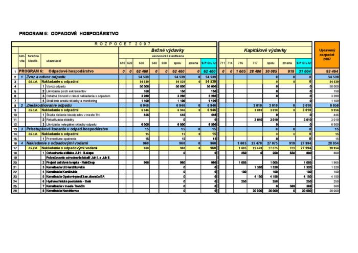 Hlavná stránka > Samospráva > Transparentný Trenčín > Rozpočet mesta > Rozpočet mesta – rok 2007 > Program 6
