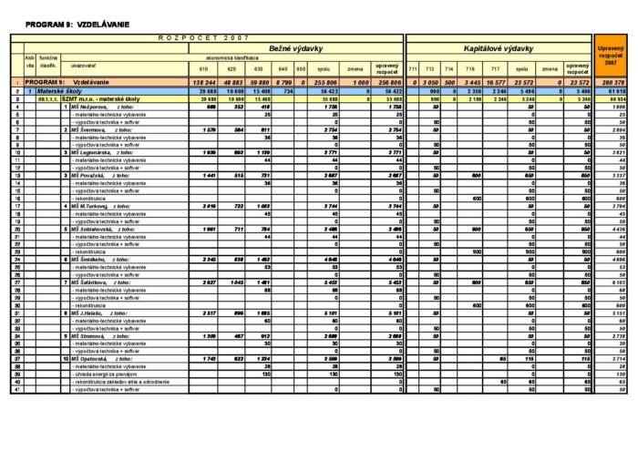 Hlavná stránka > Samospráva > Transparentný Trenčín > Rozpočet mesta > Rozpočet mesta – rok 2007 > Program 9