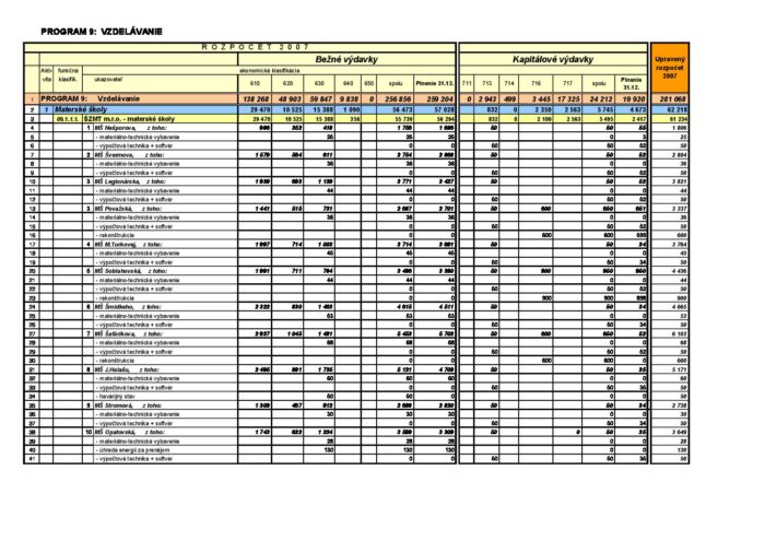 Hlavná stránka > Samospráva > Transparentný Trenčín > Rozpočet mesta > Rozpočet mesta – rok 2007 > Program 9