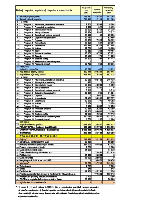 Hlavná stránka > Samospráva > Transparentný Trenčín > Rozpočet mesta > Rozpočet mesta – rok 2007 > Sumarizacia