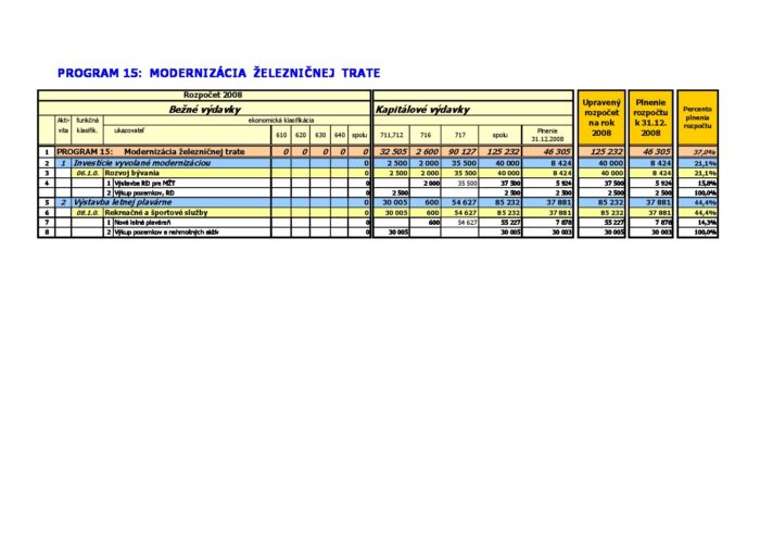 Hlavná stránka > Samospráva > Transparentný Trenčín > Rozpočet mesta > Rozpočet mesta – rok 2008 > Záverečný účet – Program 15