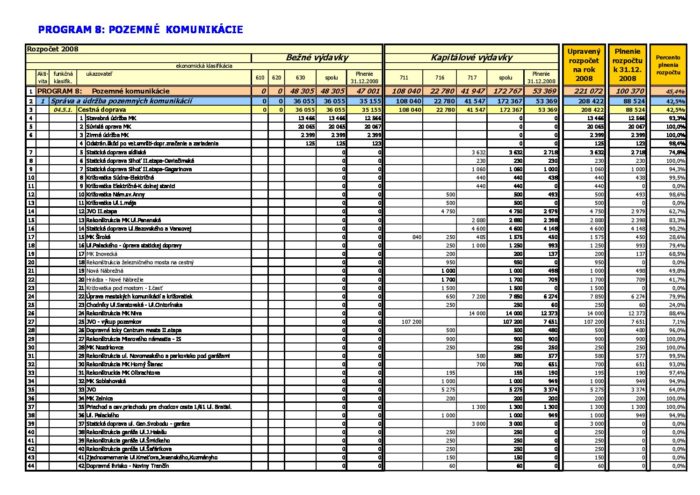 Hlavná stránka > Samospráva > Transparentný Trenčín > Rozpočet mesta > Rozpočet mesta – rok 2008 > Záverečný účet – Program 8