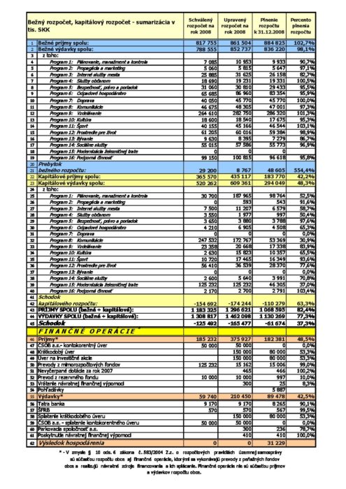Hlavná stránka > Samospráva > Transparentný Trenčín > Rozpočet mesta > Rozpočet mesta – rok 2008 > Záverečný účet – Sumarizácia v SKK