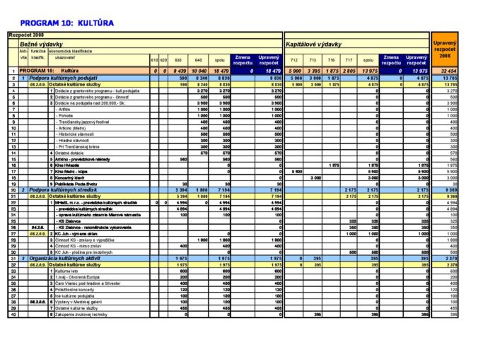 Hlavná stránka > Samospráva > Transparentný Trenčín > Rozpočet mesta > Rozpočet mesta – rok 2008 > Zmena rozpočtu – Program 10 – 2008-10-23