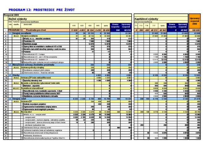 Zmena rozpočtu – Program 12 – 2008-10-23
