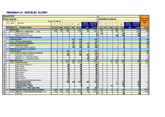 Zmena rozpočtu – Program 14 – 2008-08-28