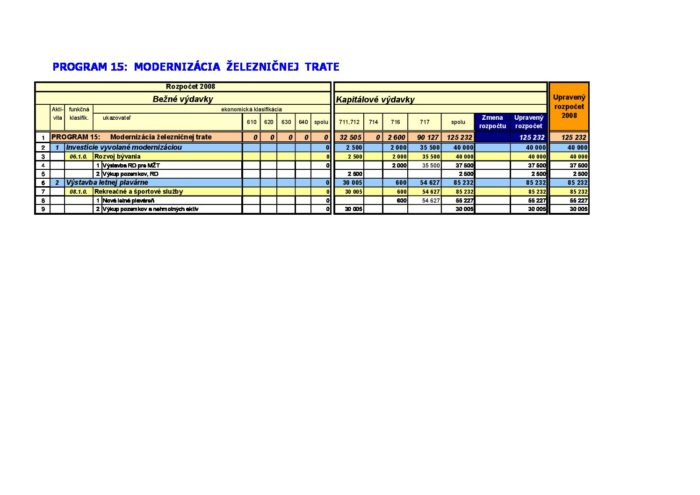 Zmena rozpočtu – Program 15 – 2008-08-28