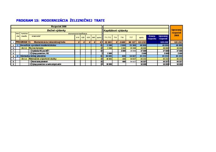 Zmena rozpočtu – Program 15 – 2008-10-23