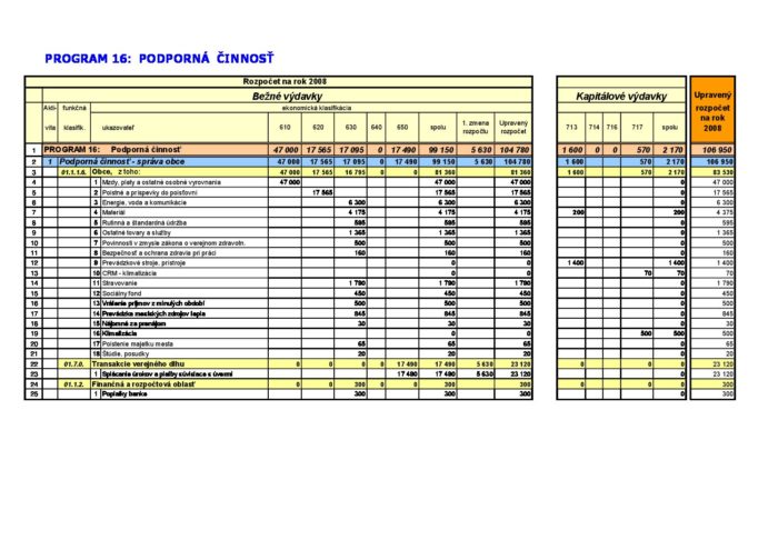 Zmena rozpočtu – Program 16 – 2008-02-28