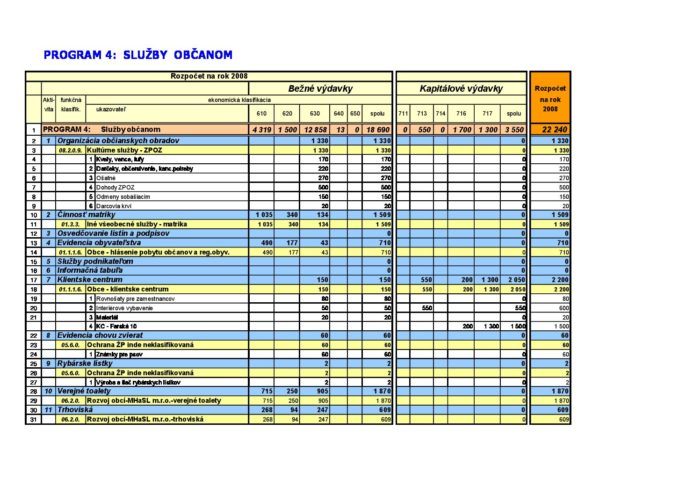 Zmena rozpočtu – Program 4 – 2008-02-28