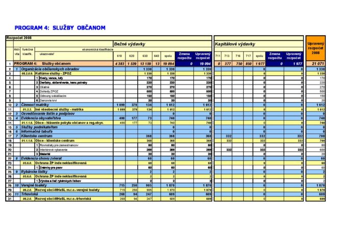 Zmena rozpočtu – Program 4 – 2008-10-23