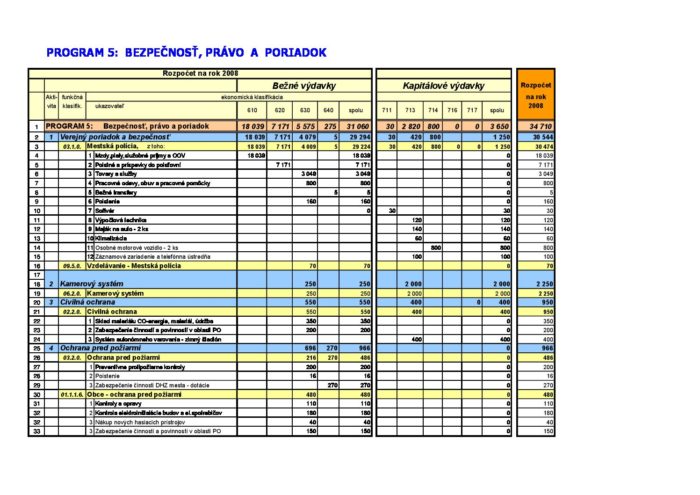 Zmena rozpočtu – Program 5 – 2008-02-28