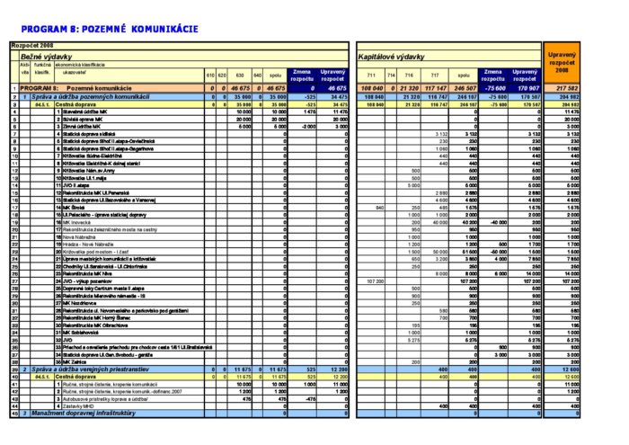 Zmena rozpočtu – Program 8 – 2008-08-28