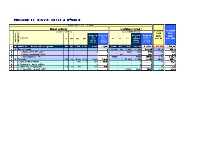 Hlavná stránka > Samospráva > Transparentný Trenčín > Rozpočet mesta > Rozpočet mesta – rok 2009 > Rozpočet mesta – Program 12