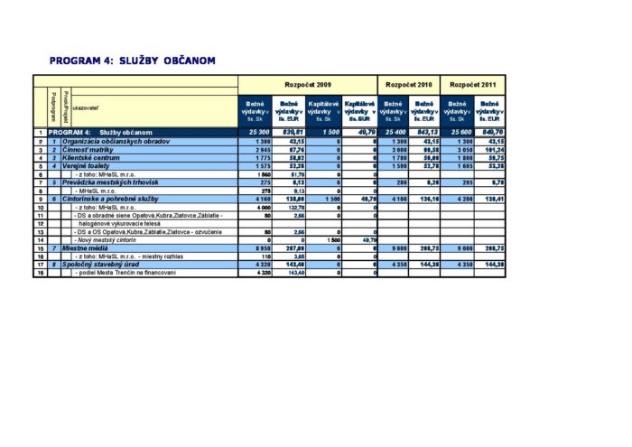 Hlavná stránka > Samospráva > Transparentný Trenčín > Rozpočet mesta > Rozpočet mesta – rok 2009 > Rozpočet mesta – Program 4_viacročný