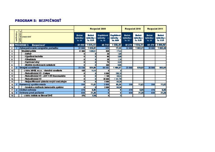 Rozpočet mesta – Program 5_viacročný