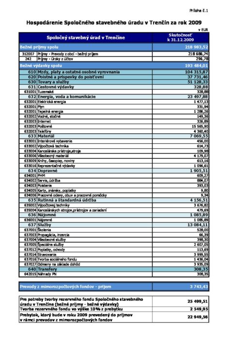 Hlavná stránka > Samospráva > Transparentný Trenčín > Rozpočet mesta > Rozpočet mesta – rok 2009 > Záverečný účet – Prílohy