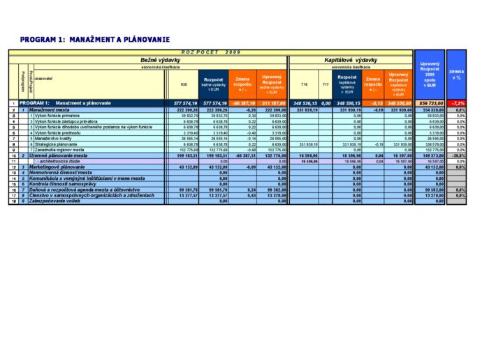 Hlavná stránka > Samospráva > Transparentný Trenčín > Rozpočet mesta > Rozpočet mesta – rok 2009 > Zmena rozpočtu – Program 1 2009-04-29