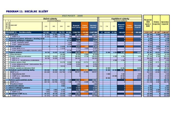 Hlavná stránka > Samospráva > Transparentný Trenčín > Rozpočet mesta > Rozpočet mesta – rok 2009 > Zmena rozpočtu – Program 11 2009-12-17