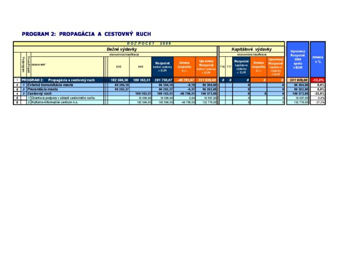 Zmena rozpočtu – Program 2 2009-04-29