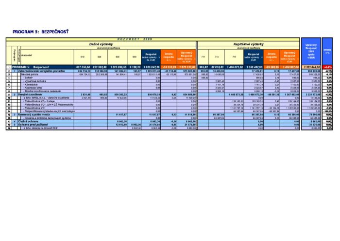 Zmena rozpočtu – Program 5 2009-04-29
