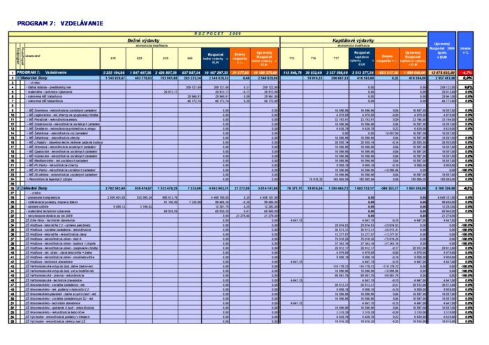Zmena rozpočtu – Program 7 2009-04-29