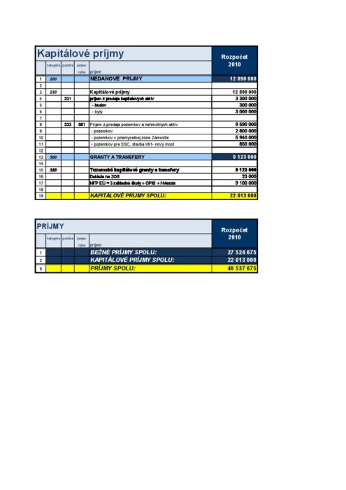 Hlavná stránka > Samospráva > Transparentný Trenčín > Rozpočet mesta > Rozpočet mesta – rok 2010 > Rozpočet mesta – Kapitálové príjmy
